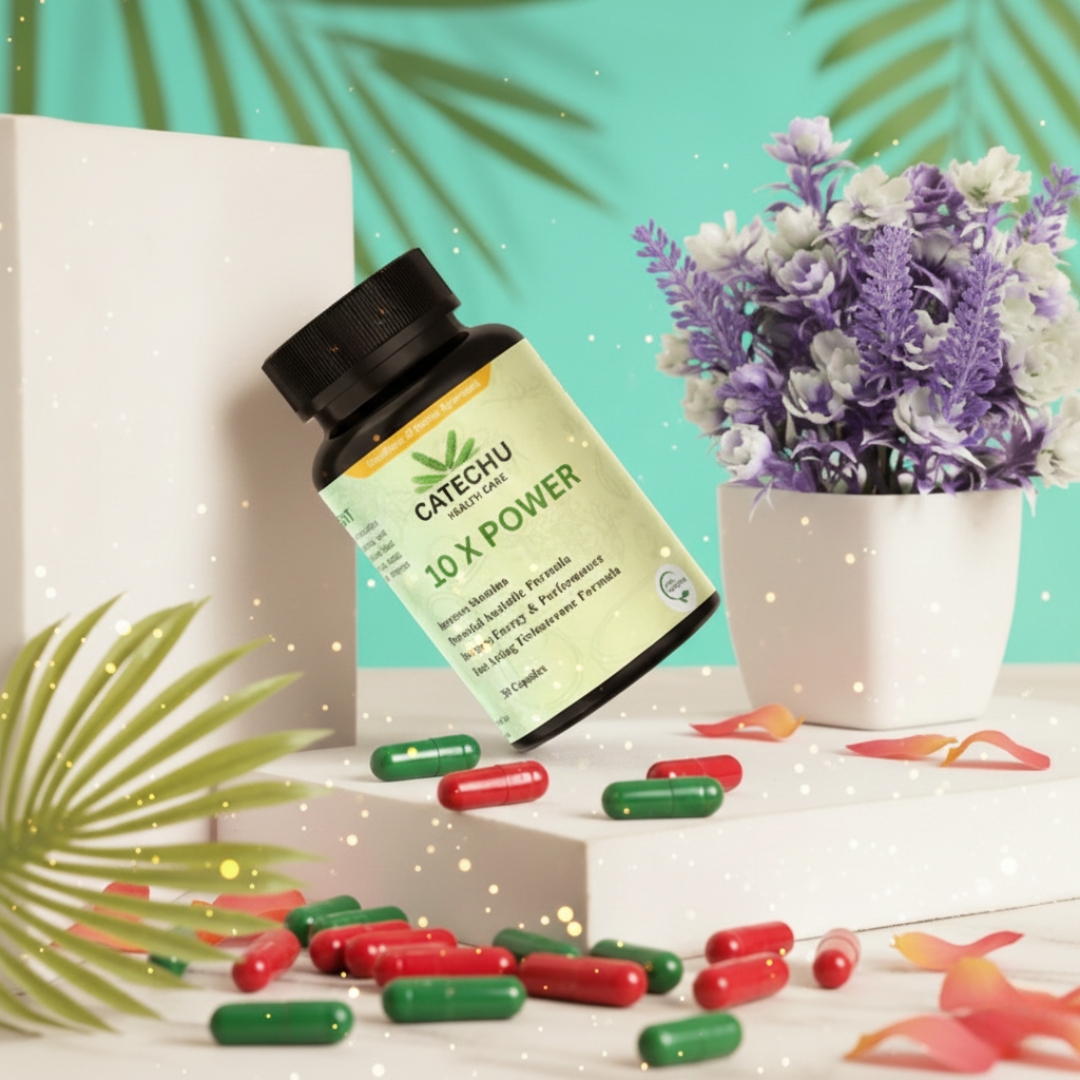 Unleash your inner strength with 10X POWER, a premium Ayurvedic formulation designed to naturally boost stamina, energy, and performance. Made with the goodness of Indian Ayurveda, this powerful blend supports testosterone levels, muscle growth, and overall vitality